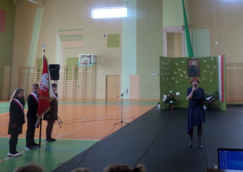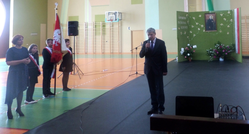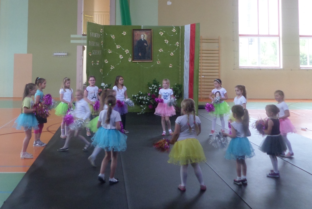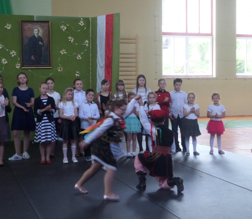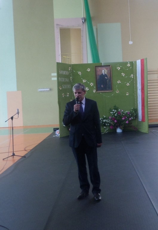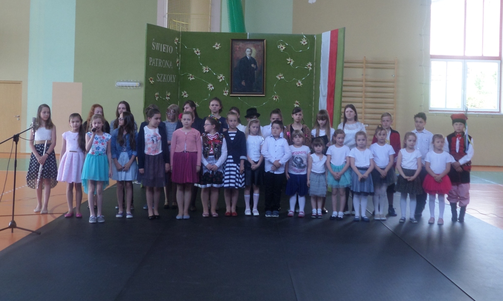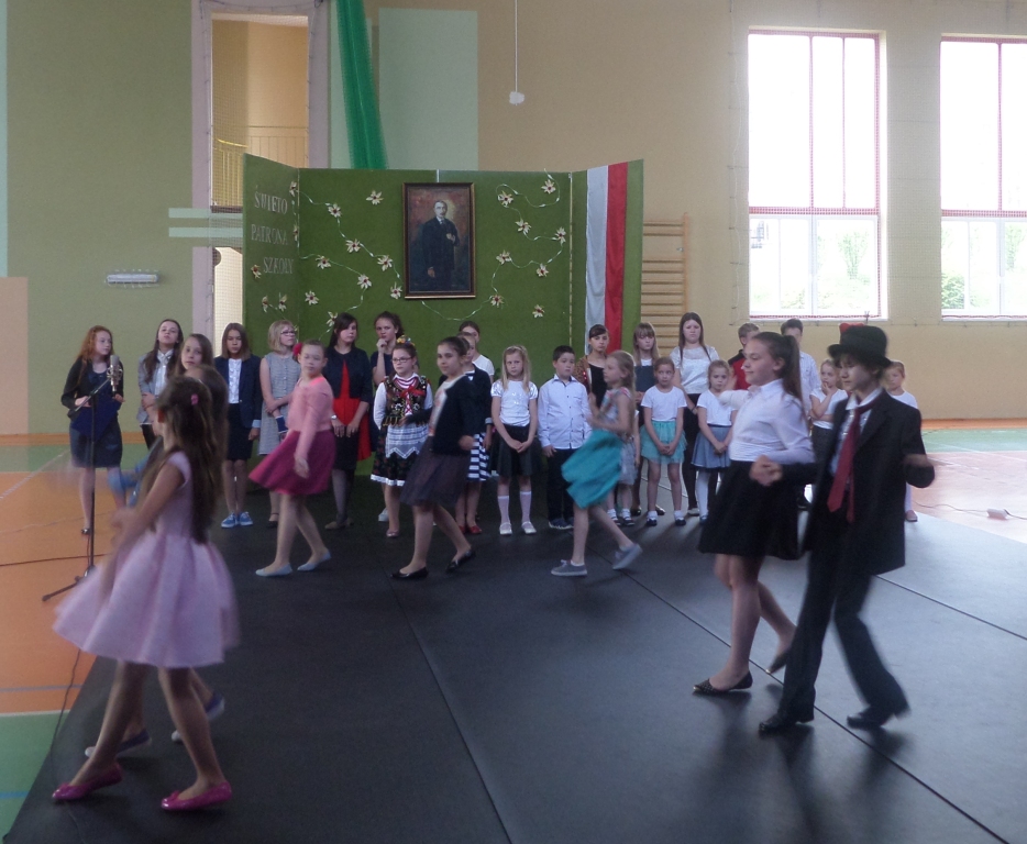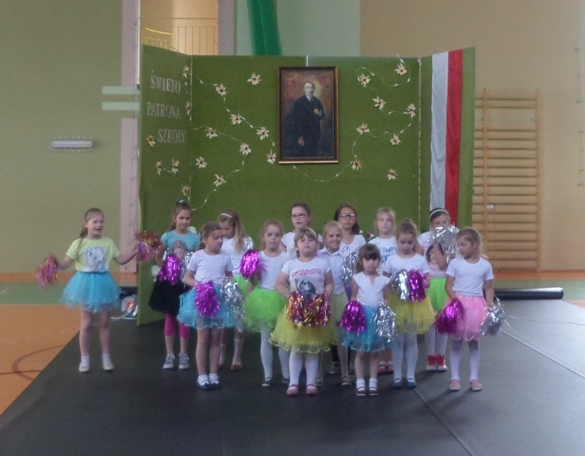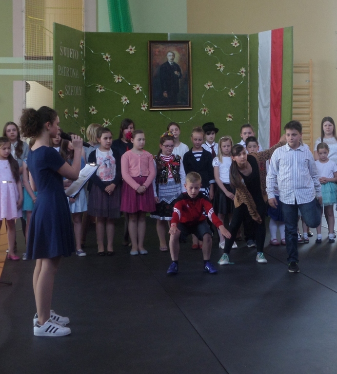 z dwóch odsłon. Pierwsza poświęcona była pamięci patrona szkoły, w niej między innymi przedstawiono fragmenty życiorysu w formie quizu. Druga część programu poświęcona była życiu szkoły, które zostało ujęte w sposób humorystyczny. Kolejnym punktem akademii był występ dzieci z układami tanecznymi do których, choreografię przygotowała Pani Bogusława Frankowicz.