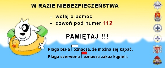 - 1. Miejsce kąpieli wyznaczają boje, koła ratunkowe, a nad nimi czuwa ratownik.
