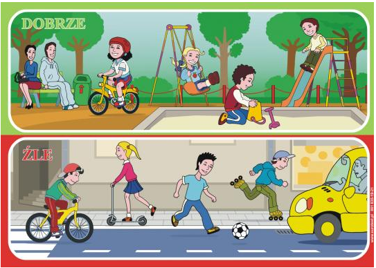 - 7. Na zabawy wybieraj miejsca bezpieczne, oddalone od jezdni, wykopów, placów budowy, torów kolejowych.