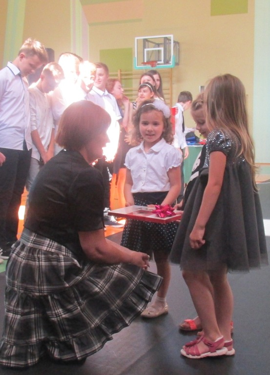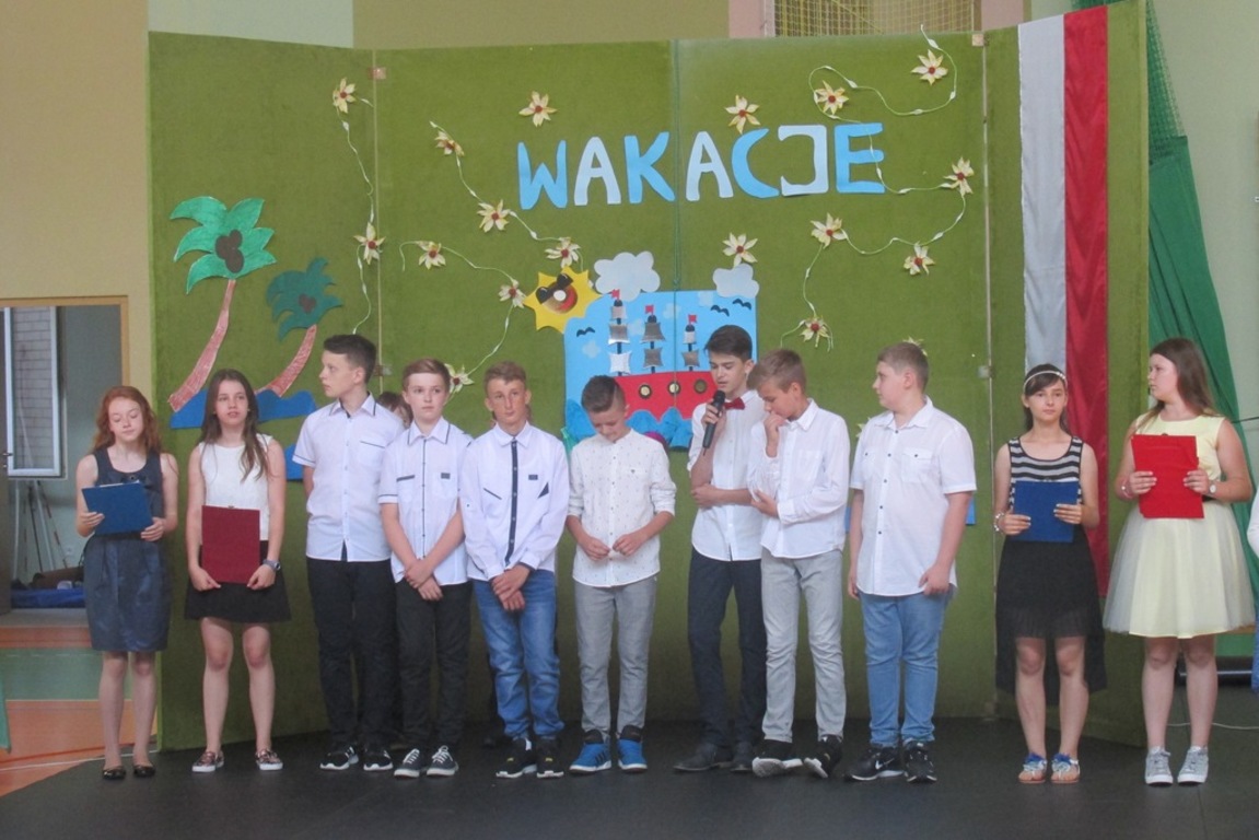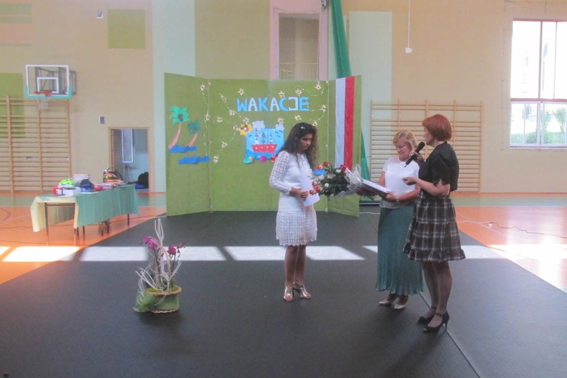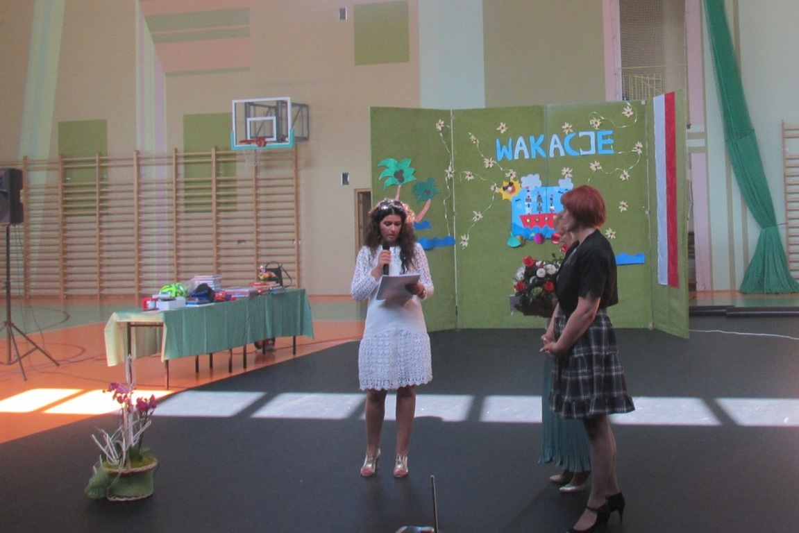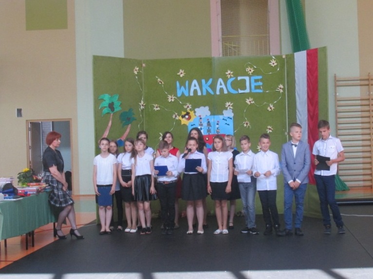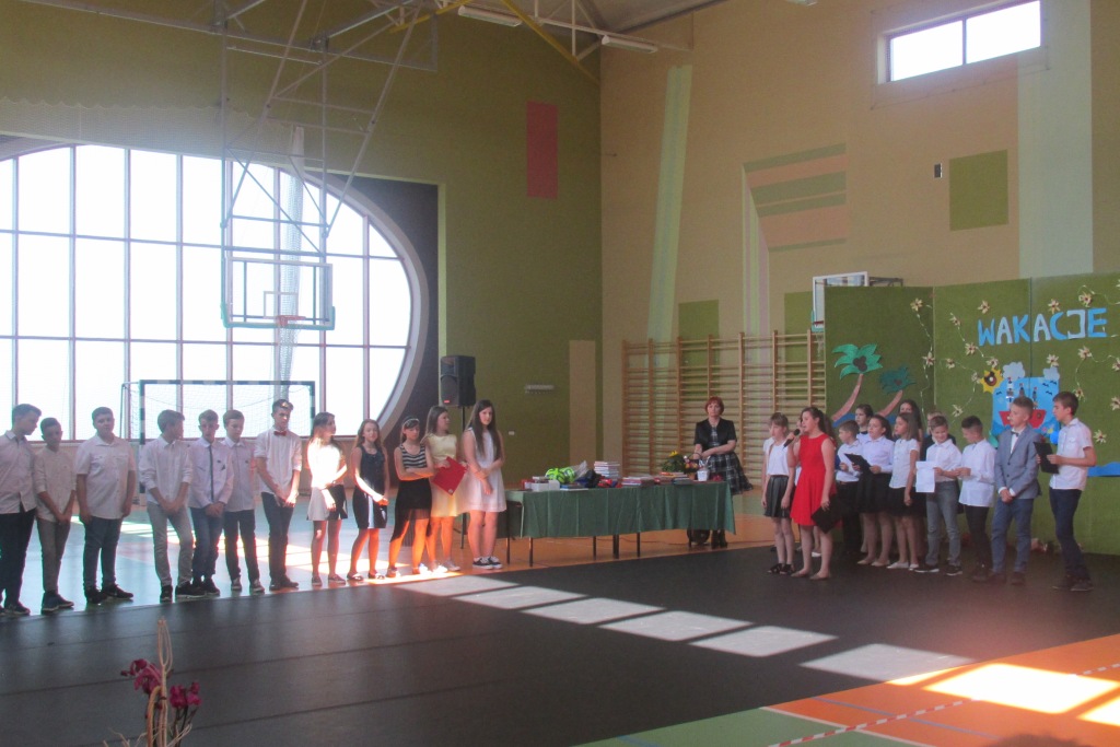 Po krótkim przemówieniu p. Dyrektor wraz z nauczycielami i przedstawicielami Rady Rodziców wręczyła nagrody wyróżniającym się uczniom. Na zakończenie uroczystości uczniowie udali się do klas, aby spotkać się z wychowawcami i odebrać świadectwa.