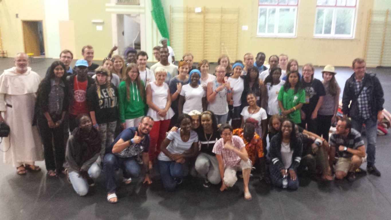 ŚDM rozpoczęły się 25 lipca. Grupa 220 pielgrzymów przybyła na wzgórze okocimskie m.in. z Burkina Faso, Martyniki, Francji w tym z : Brazylii, Indii i Madagaskaru. Studenci, uczniowie, pracownicy wielu profesji. Księża, Bracia i Ojcowie. Hala przy PSP w Okocimiu stała się jedną wielką, kolorową sypialnią i bawialnią. Mogliśmy zapoznać się z wielokulturowością i różnorodnością językową. Naszą grupę stanowili pielgrzymi francuskojęzyczni ale licznie mówiący w j. angielskim. Mogliśmy również posłuchać oryginalnych j. afrykańskich. Wszyscy przybyli w jednym celu, by pod Sztandarem Chrystusa spotkać się z Ojcem Świętym Franciszkiem i młodzieżą z całego świata. Pogoda ich nie rozpieszczała. Deszczowo, wietrznie i upalnie. Nieważne. Z uśmiechem szli i jechali. Późnym wieczorem, nocą, nad ranem wracali. Zmęczeni, strudzeni ale uśmiechnięci i zadowoleni z kolejnego przeżytego dnia. W wolnym czasie, a było go jak na lekarstwo grali w piłkę na szkolnym podwórku, tańczyli i śpiewali. Smakowali polskich potraw. Pierogów, żurku, zupy gulaszowej, zielonych świeżych ogórków, jabłek, świeżo pieczonych ciast, ciasteczek i mac. Podziwiali nasze krajobrazy (pola, lasy, góry). Zafascynowani naszą kulturą, gościnnością i serdecznością. Znużeni zasypiali w swoich „kokonach”. Hala na kilka godzin zapadała w sen. Byli tacy co głośno chrapali i nie dali spać innym. Byli też tacy co gwizdali by przerwać chrapanie i tacy, którzy z tego nie robili nic. Nikt nikomu nie był wilkiem. 5 nocy i 5 dni wspólnie spędzonych zbliżyło nas do siebie. Bariera językowa przestała być problemem.